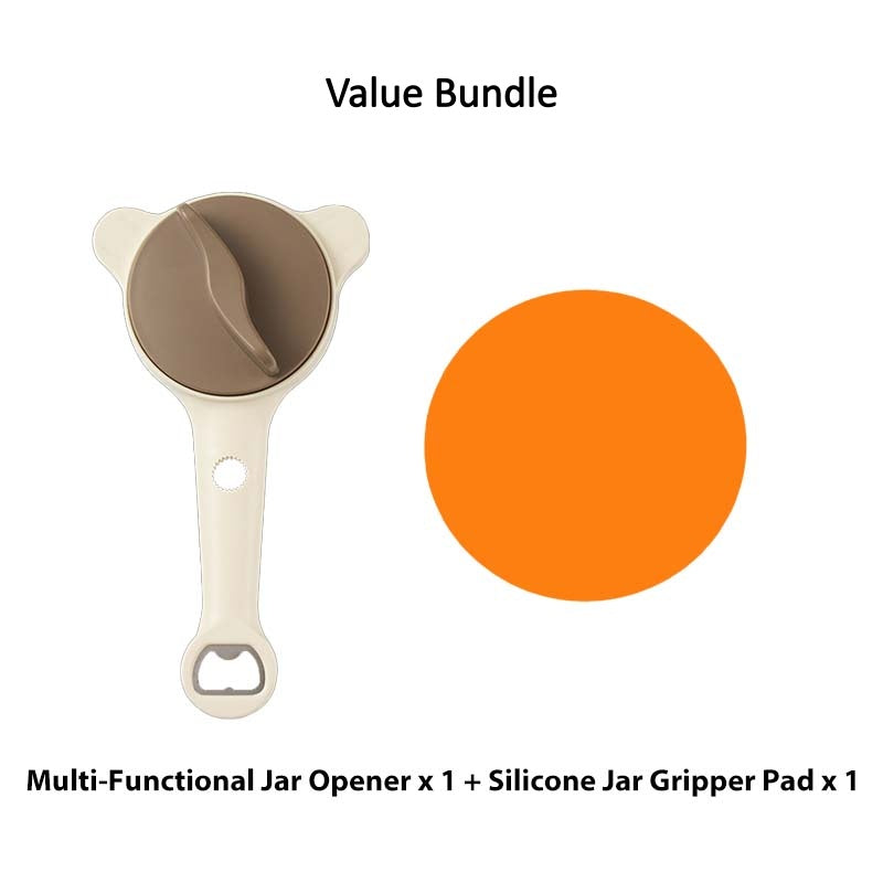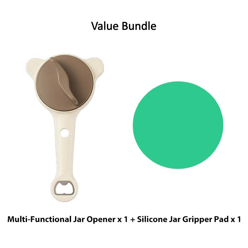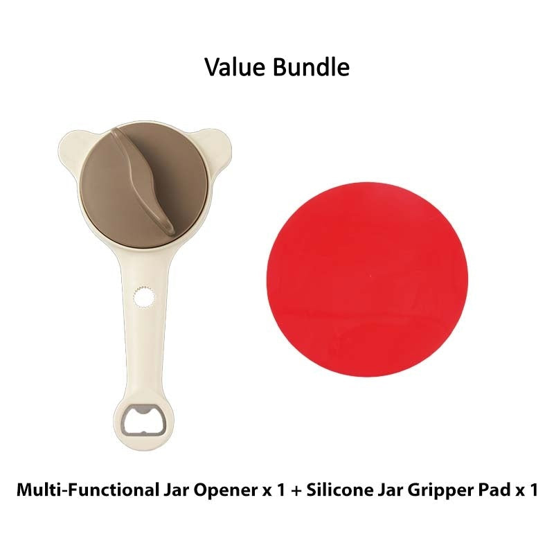 4-V-1 VEČFUNKCIJSKO ORODJE: Združuje štiri osnovna kuhinjska orodja v enem kompaktnem pripomočku, vključno z odpiračem za kozarce, odpiračem za steklenice in dvema odpiračema za vijake, kar vam prihrani dragoceni prostor v predalu in poenostavi kuhinjske opravila.