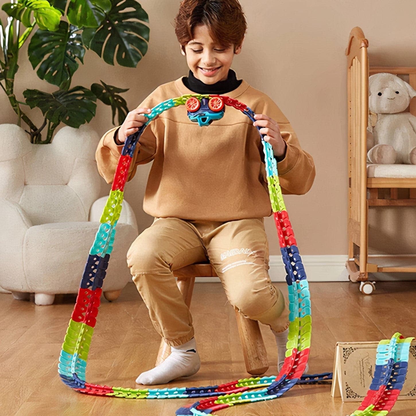 Vos enfants peuvent utiliser des chaises comme tunnels, des livres comme ponts et créer des boucles géantes à l'infini pour repousser les limites de leur nouveau jouet et les divertir pendant des heures !
